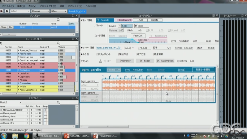 最後他提到自己在寫遊戲寫配樂時,不會直接依照順序抓了就做,而是會先播放場景前後可能會播放的音樂,反覆聽過後,確認音樂寫下去銜接起來順不順,用這種做法是為了確認情緒的連貫性。