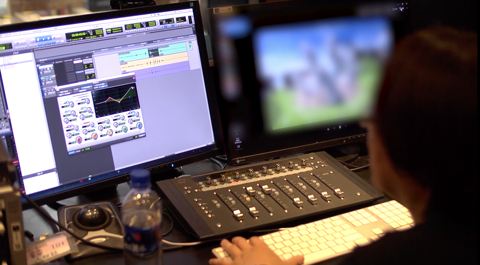 他們製作音效的地方位在卡普空總部的地下室,這次要示範的是《魔物獵人世界》的超大型擴充內容──Iceborne 中的新魔物「冰龍」、「凍魚龍」以及新場景等等的音效製作。