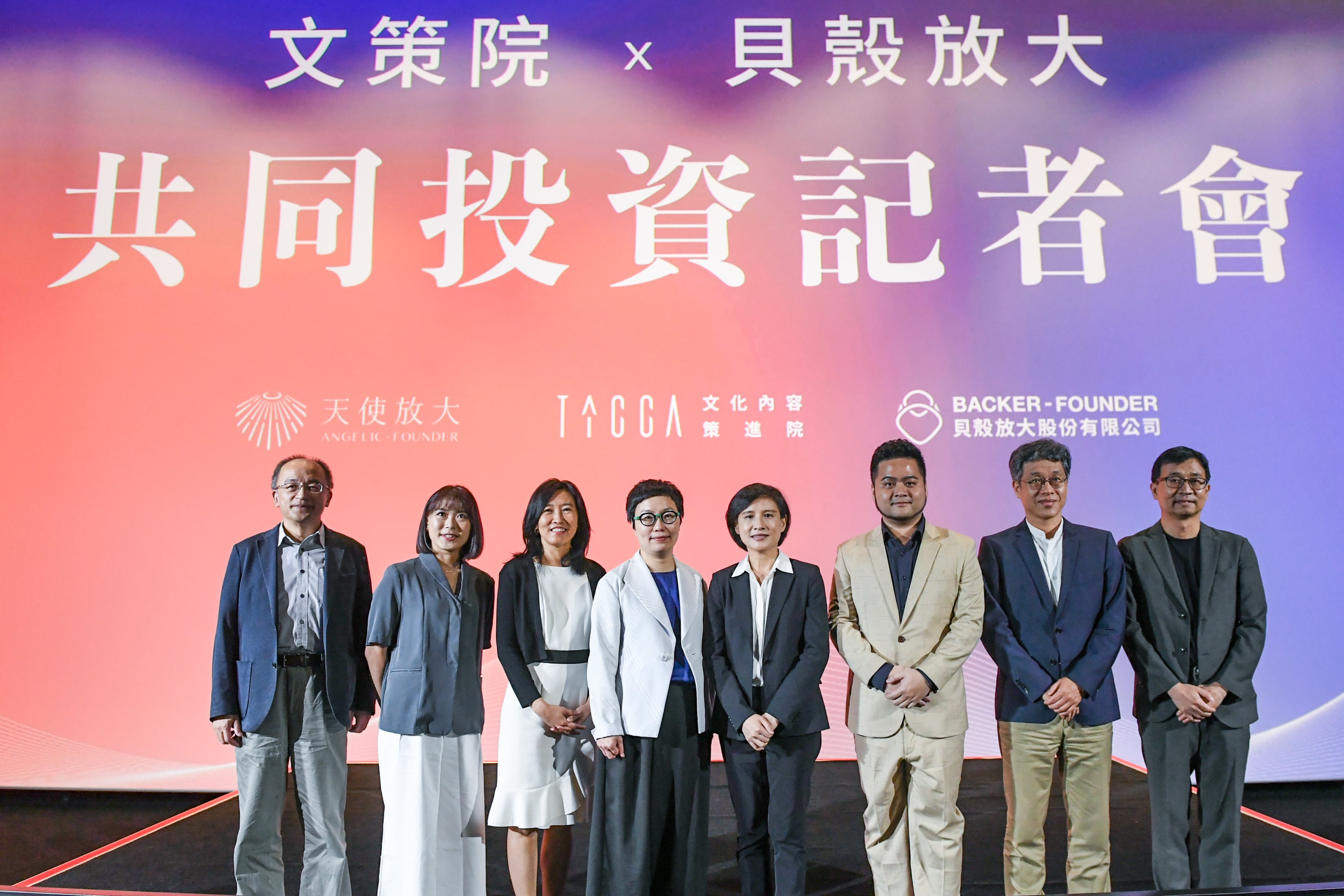 此次文策院與貝殼放大共同投資記者會,邀請到文化部部長鄭麗君、法委員高嘉瑜、林楚茵、蘇巧慧、賴品妤、文策院董事長丁曉菁、文策院院長胡晴舫、貝殼放大執行長林大涵、天使放大執行長廖薏淳、國立臺灣歷史博物館館長林崇熙、國立臺灣文學館館長蘇碩斌、國家人權博物館館長陳俊宏,以及產業界貴賓也都一同出席的盛會。